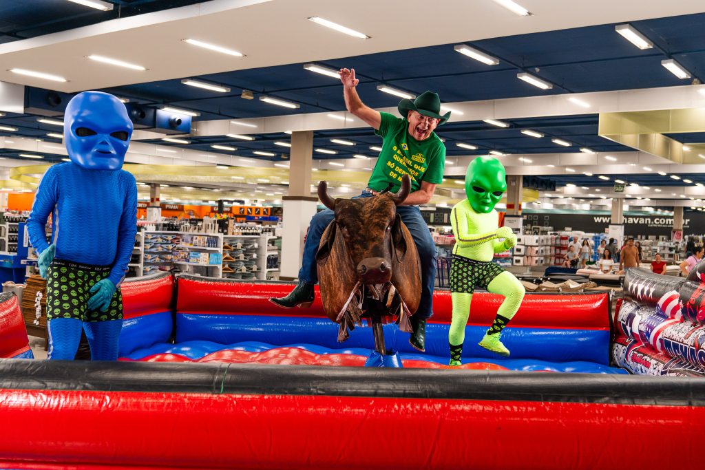 Que tal ganhar até R$ 2 mil em vale-compras nesse Dia do Consumidor? A Havan promove uma ação especial no dia 15 de março em algumas filiais do Brasil. A proposta é simples: ficar mais de cinco segundos em cima de um touro mecânico. Para participar, o cliente deverá fazer uma compra mínima de R$ 300 nas lojas participantes, se inscrever no site www.diaconsumidor.havan.com.br e aceitar o desafio.