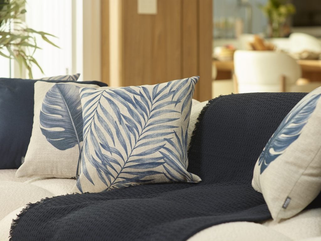 No canto do L: o truque perfeito pra preencher o espaço vazio. Dobre a manta e acomode bem no ângulo do sofá, com algumas almofadas por cima. Fica aconchegante e dá aquela sensação de sala bem pensada.