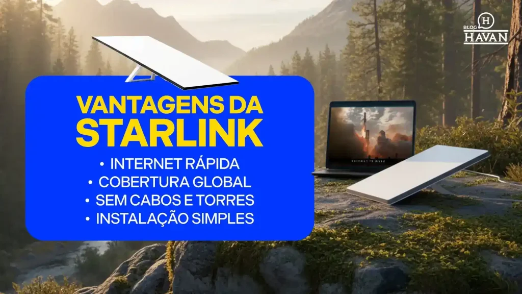 Se você gosta de acampar, viajar, mora em um lugar onde a internet não chega, ou quando chega tem a velocidade de conexão muito lenta, a Starlink é pra você! Aqui na Havan você encontra o equipamento nas nossas lojas ou pelo site. E o melhor: parcelamento em 10 vezes, sem entrada e sem juntos!