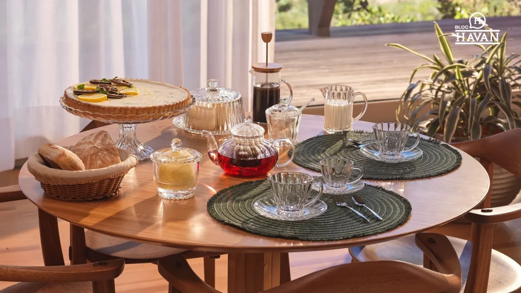 • Se a sua mesa é de vidro ou metal: Coloque um centro de mesa de madeira ou um caminho de mesa de linho.