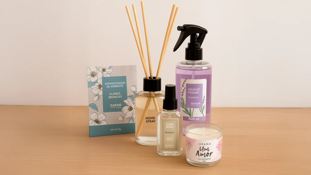 Use difusores, velas aromáticas ou incensos naturais. O cheiro de “casa limpa” ou de “café fresco” muda instantaneamente o humor de quem entra no ambiente.
